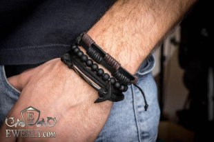 - Three leather bracelets with adjustable cord.