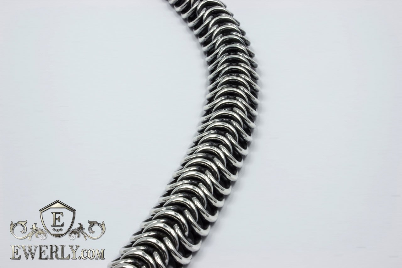 Large bracelet "Dragon Scale" of silver 125 grams for men