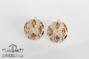 Серёжки из серебра с золотом для женщин (серебро 925 пробы, золото 375 пробы) с камнями - фианитами синего цвета.