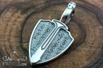 Кулон выполнен в форме щита, символизирующего силу и защиту. Универсальный дизайн гармонично дополняет как повседневный, так и классический стиль. Крупное ушко позволяет носить подвеску на цепочках разной толщины. При необходимости мы можем изменить размер ушка или изготовить изделие с учётом ваших пожеланий.