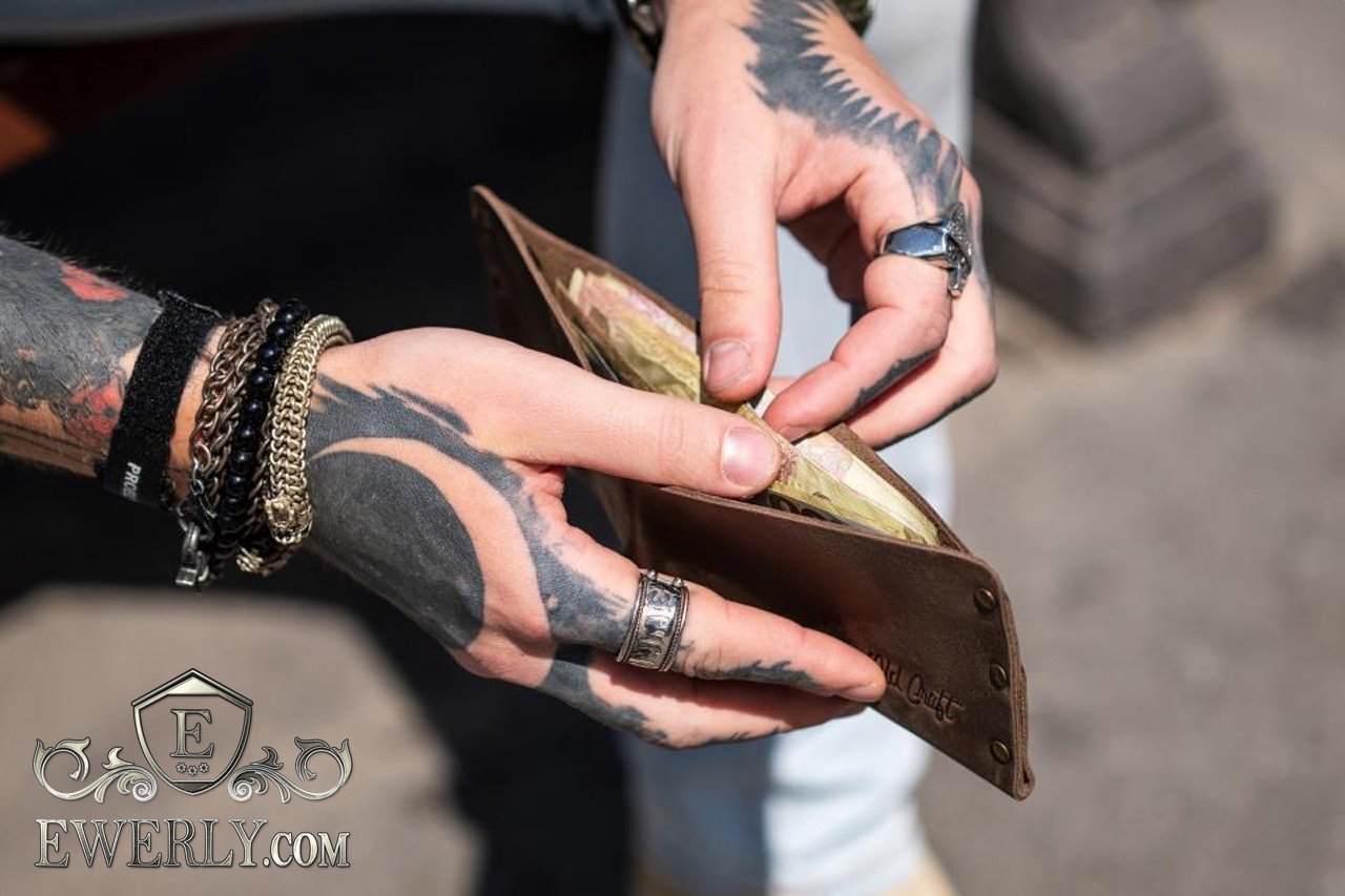 Чоловічий шкіряний гаманець ручної роботи коричневий 11014IK