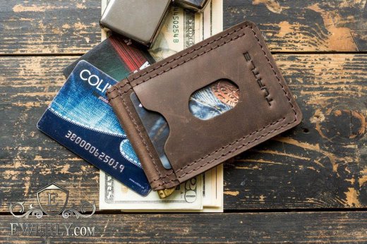 Затиск для грошей купюр шкіряний коричневий 11031QJ