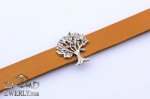 Жіночий шкіряний браслет з сріблом в вигляді дерева