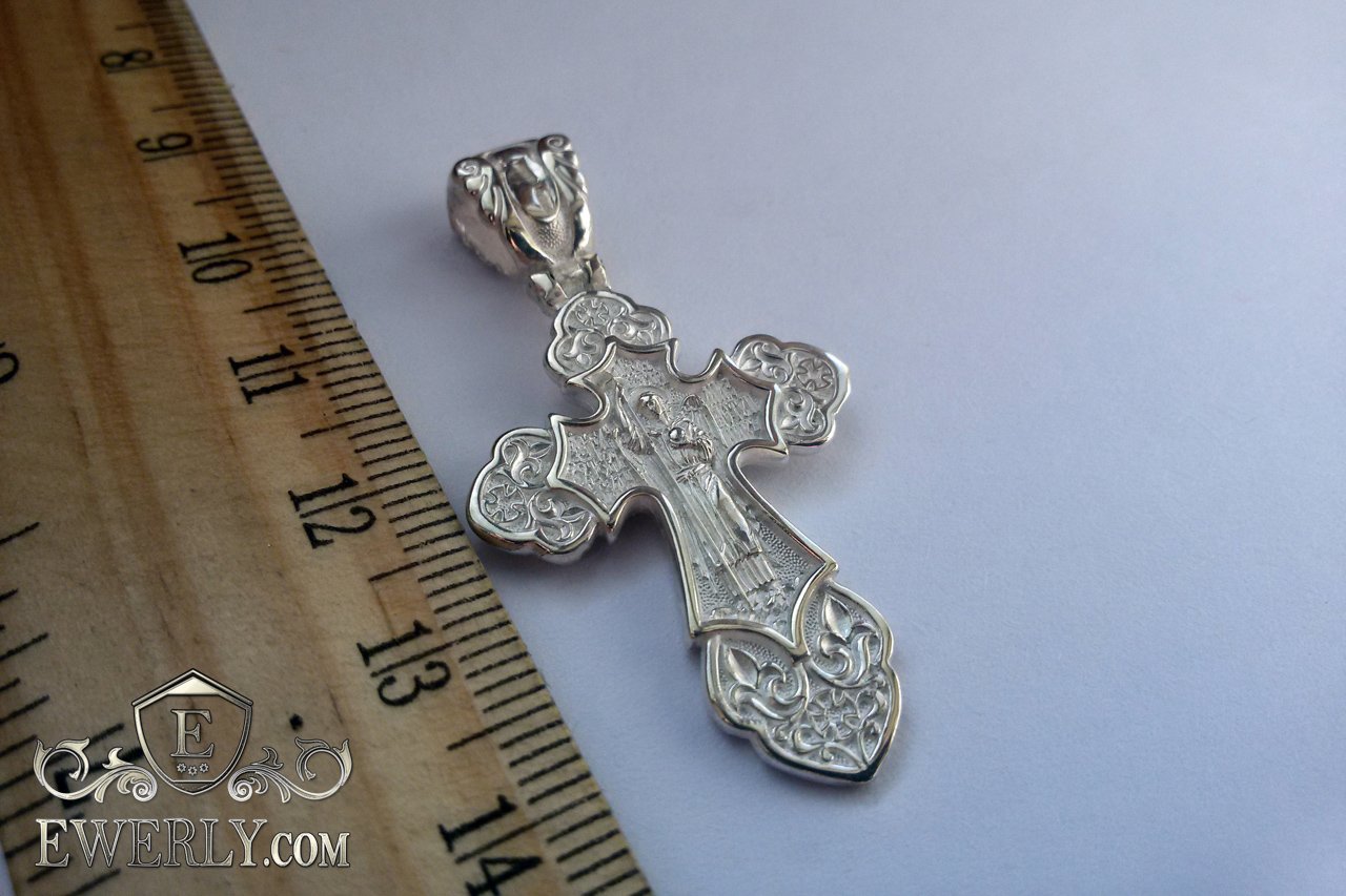 Ексклюзивний срібний хрестик на шию. Розп'яття Христове. Ангел охоронець