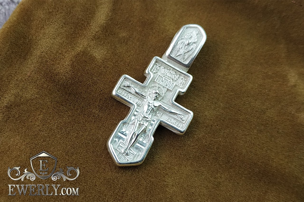 Натільний чоловічий православний хрест зі срібла. Розп'яття Христа.Висота: 6 мм