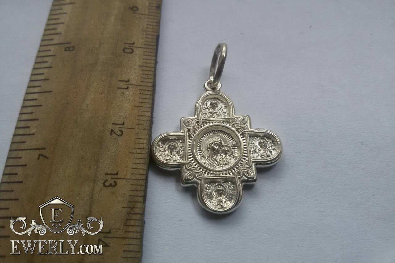 Зображено на фото: Православний хрест без розп'яття. Господь Вседержитель. Казанська ікона Божої Матері і вісім святих. Довжина: 2.5 см
