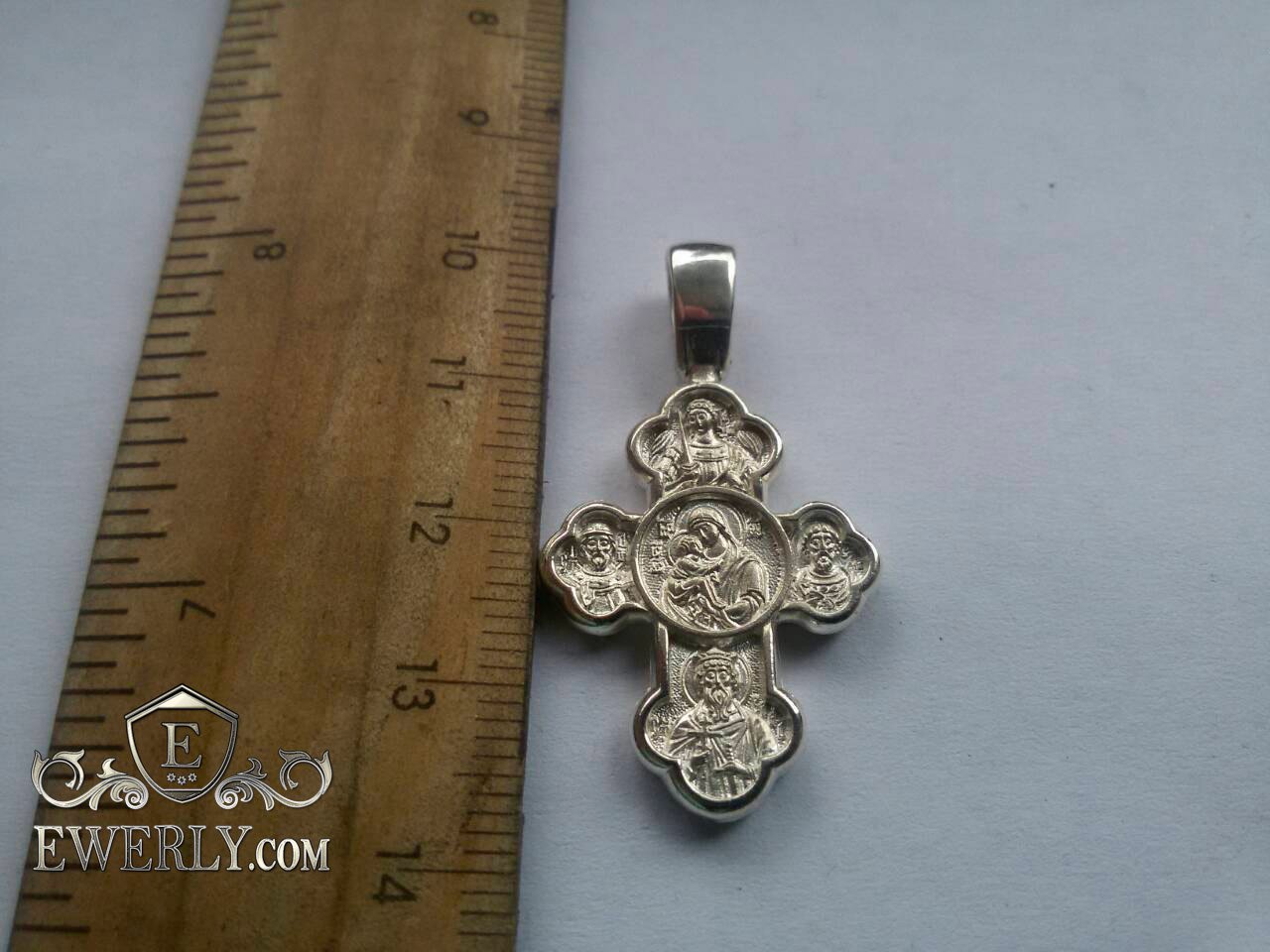 Зображено: Срібний хрестик з Хрестовоздвиженням. Донська ікона Божої Матері. Довжина: 2.6 см