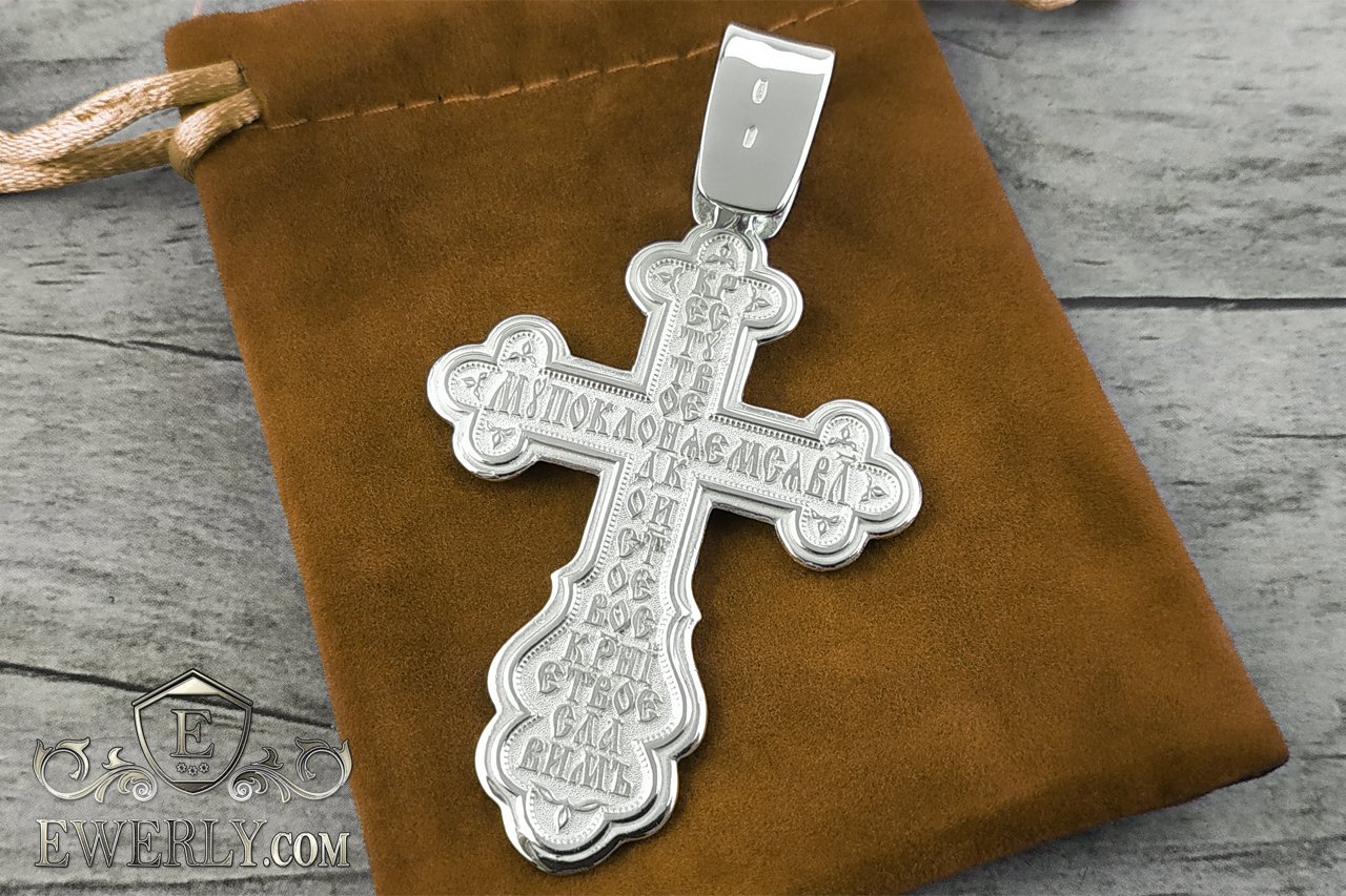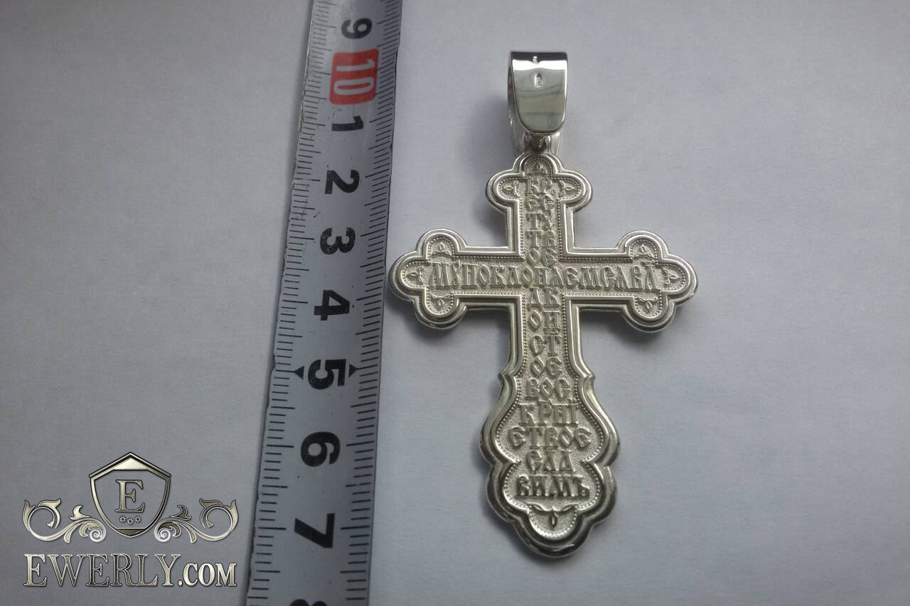 Зображено на фото: Православний срібний хрест з розп'яттям Христовим. Молитва Христу. Довжина: 5.7 см