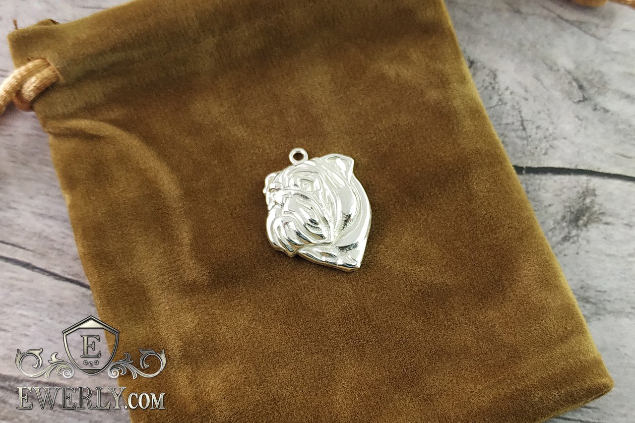 Срібна підвіска-кулон у вигляді собаки (Бульдог)