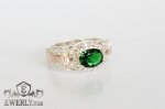 Кільце зі срібла з зеленим фіанитом і золотом